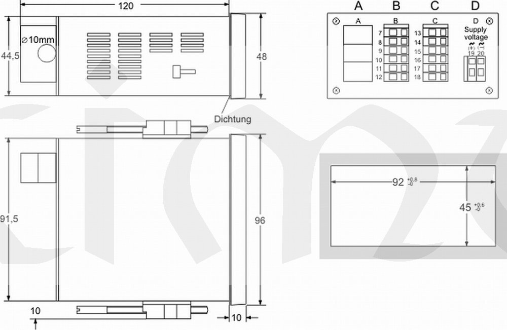 Rozměry přístroje 96x48