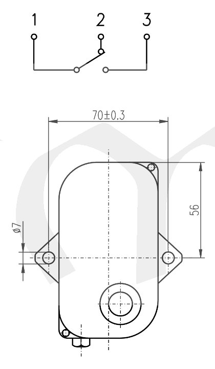 Teplotně citlivý element je stonek termostatu, tvořený dilatující trubkou z antikorozní žáruvzdorné oceli. Teplotní dilatace trubky se přenáší invarovou tyčí přes pákový převod na spínací mechanismus, který je uzavřen v hlavici. Regulační knoflík k nastavení teploty je rovněž uzavřen v hlavici a lze jej zaaretovat, aby vlivem otřesů nedo­šlo k přestavení vypínací teploty. Pro připevnění ter­mostatu slouží 2 patky s otvory pro šrouby. Při mon­táži nesmí být stonek mechanicky namáhán a musíbýt uložen tak, aby mohl dobře dilatovat. Termostat může být umístěn v libovolné poloze. Termostat je opatřen kabelovou ucpávkou P 13,5.