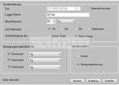 USB datalogger umožňuje detekovat nárazy a vibrace ve 3 osách. Data s časovým razítkem mohou být prostřednictvím USB rozhraní pohodlně přenášena do počítače a vyhodnocována. Datalogger může vyhodnocovat statické a dynamické pohyby i maximální hodnoty. Tento logger je napájen bateriemi a lze ho použít samostatně.