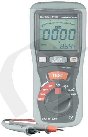 Měřič izolačního odporu Voltcraft ET-100, 125/250/500/1000V