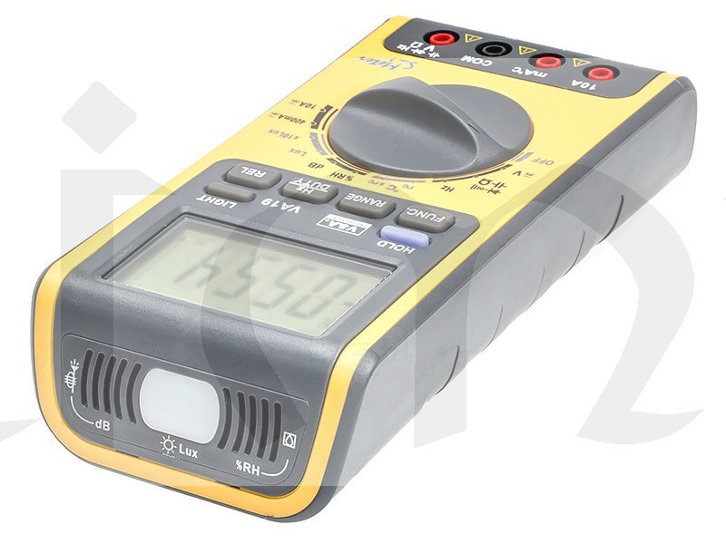 Digitální multitester 5 v 1 byl navržen tak, aby kombinoval funkce měřič teploty, měřiče hladiny zvuku, měřič světla, měřič vlhkosti a digitální multimetr.