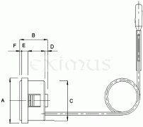 Montáž teploměru se provádí nasunutím hlavice teploměru do otvoru dle příslušného rozměrového náčrtu a umístěním teploměrového