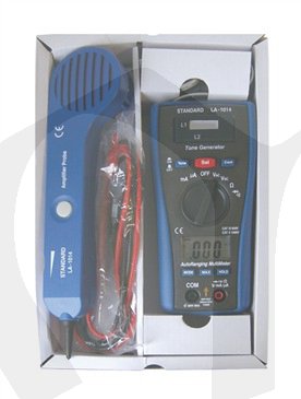 S přístrojem LA 1014 (LSG-4DMM) jednoduše najdete vedení ve stěnách, stropech a podlahách. Skládá se z generátoru, který moduluje vysokofrekvenční signál na testovaném vedení a velice citlivého příjmače, který spolehlivě najde kabel ve zdi až do hloubky 15cm. Možnost připojení signálu přes krokosvorku nebo konektor RJ11. Co však tento přístroj vyvyšuje nad ostatní, je mnoho funkcí multimetru. Pro běžné měření tak již nepotřebujete další přístroj.