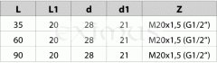 Návarek k teploměrům 90x pr.28mm, M20x1.5