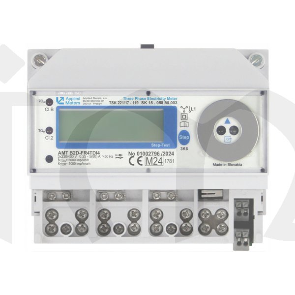 Třífázový, digitální elektroměr pro přímé měření: - přímé měření proudu do 80A - úředně ověřený elektroměr dle MID pro veškeré fakturační měření - třída přesnosti 1 - montáž na lištu DIN - velikost 7 modulů - impulsní výstup: ANO - rozhraní RS485 (protokol IEC dle 62056-21) - hmotnost 690g - LCD displej- měření energie, výkonu, napětí, proudu, účiníku... (A+,A-,R+,R-,P+,P-,Pmax,U, I, cos φ ...) - historické záznamy vybraných registrů vytvořené na konci kalendářního měsíce (maximálně 15 měsíčích záznamů (A+, A-, R+, R-, Pmax) - možnost listování historických hodnot kWh a kW na displeji - záznamy událostí (o působení magnetického pole, výpadcích napětí, narušení krytu elektroměru...) - počet událostí s datem jejich výskytu - záznam údajů profilů (Load profiles) Elektroměry umožňují měření energie v sazbách řízených interními hodinami (max. čtyři sazby) nebo ovládaných externě (dvě sazby). Naměřená data ukládaná do registrů označených dle OBIS kódů jsou zobrazená na LCD v cyklickém nebo krokovacím režimu. ?Během výpadků fázového napětí jsou data zálohována v energeticky nezávislé paměti. Elektroměry je možné parametrizovat a odečítat pomocí optické sondy typu AMOS a software AMsoft dodávaného výrobcem.