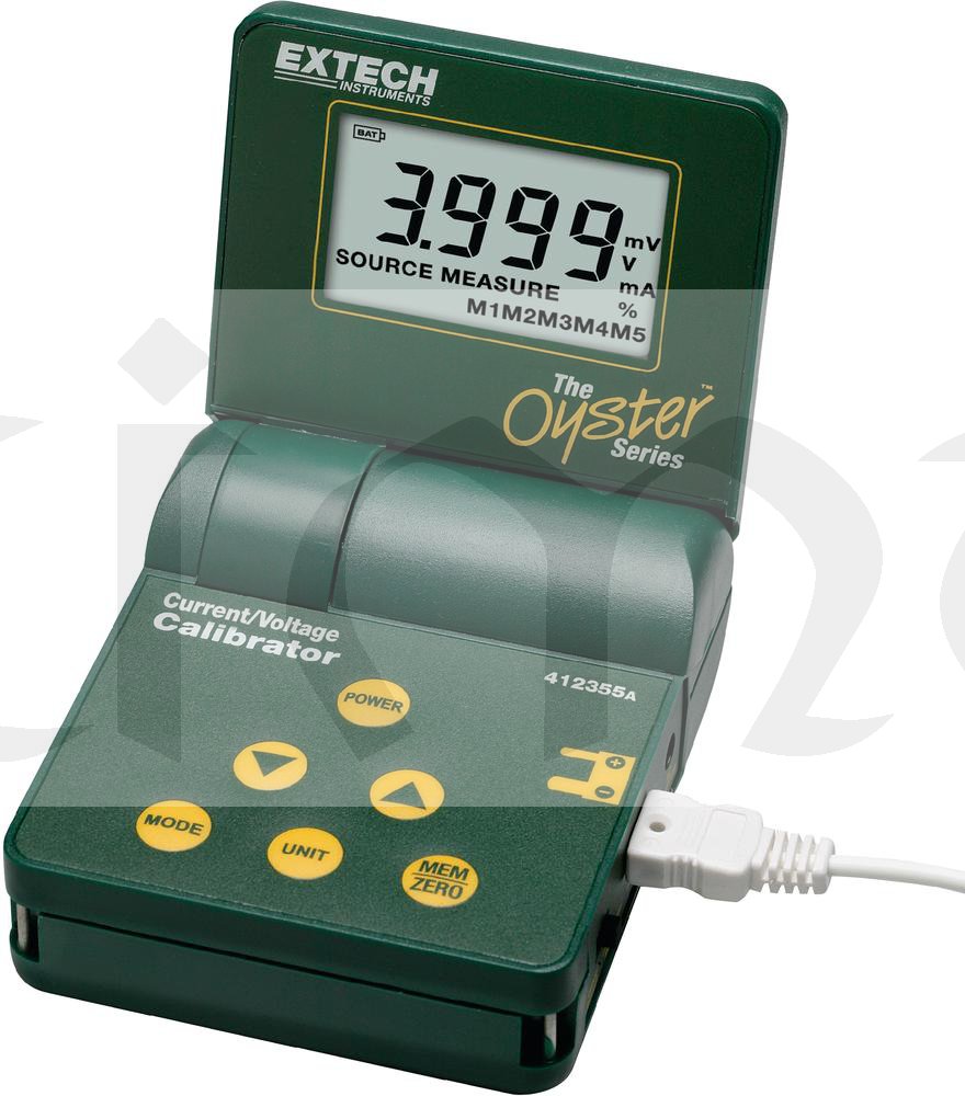 Přístroj 412355-A je přesným „zdrojem" pro kalibrační přístroje a je velmi vhodný pro měření stejnosměrných procesních signálů. Na velkém displeji LCD zobrazuje hodnoty v mA nebo také jako % rozmezí 0...24 mA nebo v mV u rozmezí napětí. V přístroji je uloženo 5 kalibračních hodnot, které zajišťují rychlou činnost. Zdroj kalibrace lze snadno nastavit v rozmezí 0...25 mA a 0...10 V.