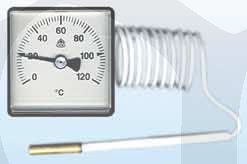 TCS 48 je tlakový teploměr určený k měření teploty v soustavách, kde místo snímání teploty není totožné s místem odečtu.
