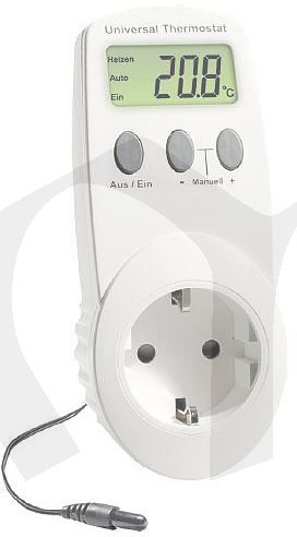 Elektronický termostat UT300 s univerzálním použitím a digitálním zobrazením zapínací a vypínací teploty i aktuální teploty současně. Termostat lze použít téměř v topném i chladícím provozu. Kromě použití jako samostatného přístroje, může univerzální termostat sloužit i jako náhrada za vadné mechanické termostaty. To umožňuje např. ledničku s vadným termostatem zapnout a vypnout přes termostat, který je umístěn v zásuvce. Termostat můžete používat i pro měření teploty v terariu.