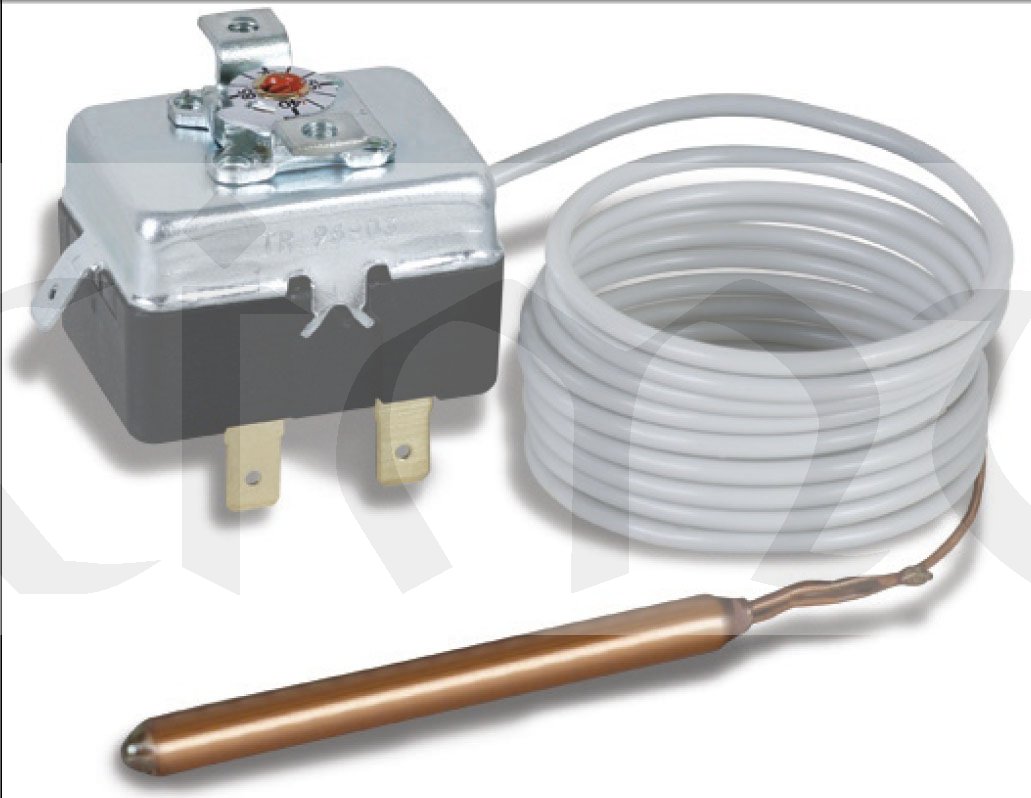 Termostat E0482, 0..+90°C; kapilára 1m, přepínací kontakt, ovládání šroubovák