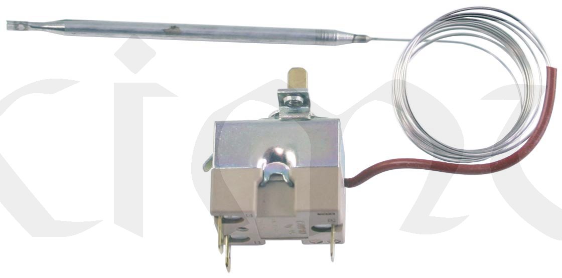 Termostat E1856, 0..+120°C; kapilára 1.5m inox, přepínací kontakt, čidlo d=5mm, ovládání knoflíkem na obj.