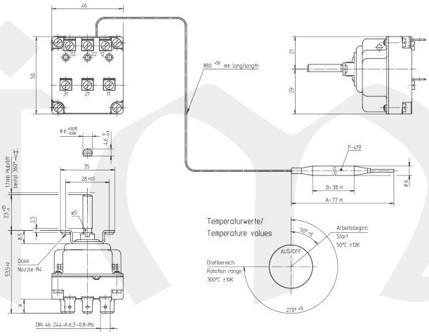 Termostat kapilární 3f, 55.34052.010, +300°C