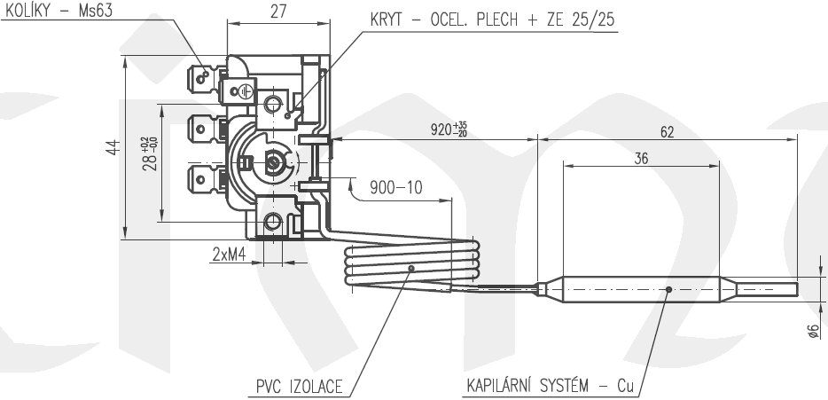 Kapilární regulátor (termostat) za normálních pracovních podmínek udržuje teplotu ve spotřebiči nebo jeho části, v mezích nastavených uživatelem automatickým vypínáním a zapínáním elektrického obvodu. Typické použití termostatu KR je při regulaci elektrických ohřívačů vody.