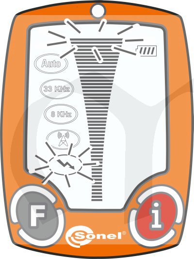 - aktivní režim (s vysílačem) - 8 kHz, 33 kHz - lokalizace s přímým napojením vysílače na objekt, který není pod napětím