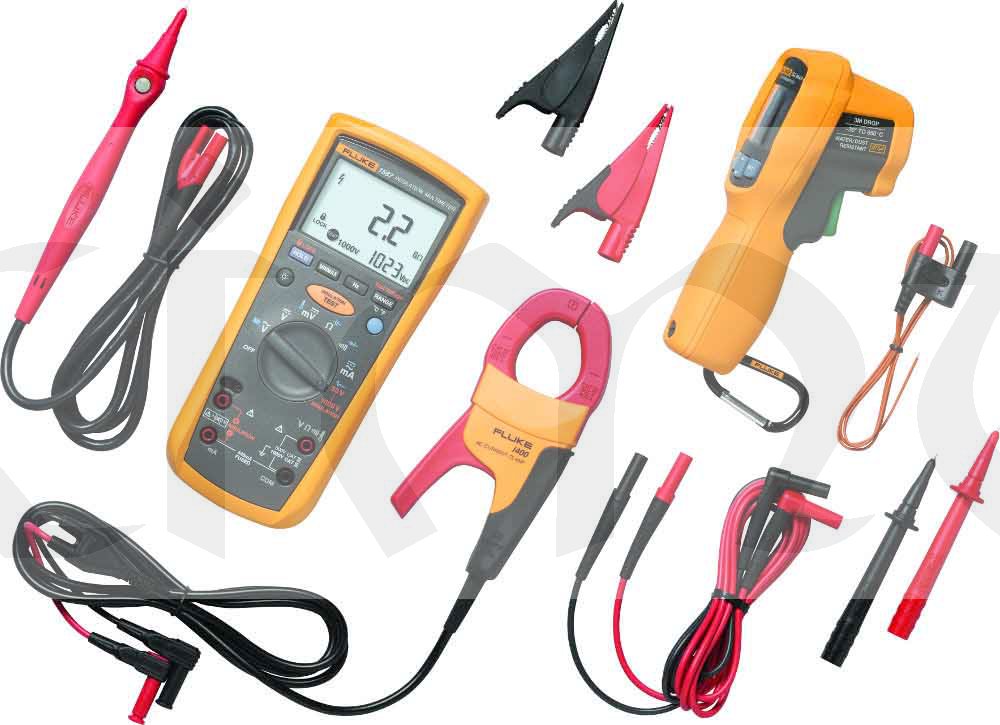 Fluke1587ET KIT - Výhodná sada měřiče izolace Fluke1587 včetně sondy s dálkovým ovládáním, proudových kleští Fluke i400, odolného infrateploměru (pyrometru) Fluke62Max+, termočlánku typu K, měřicích vodičů, krokodýlků, dokumentace a pouzdra.