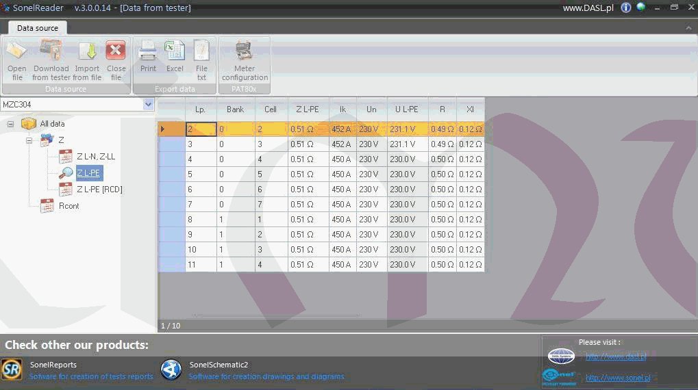 - Automatické měření v zásuvce s použitím adaptéru UNI-Schuko, s možností konfigurace dvojic měřených vodičů.