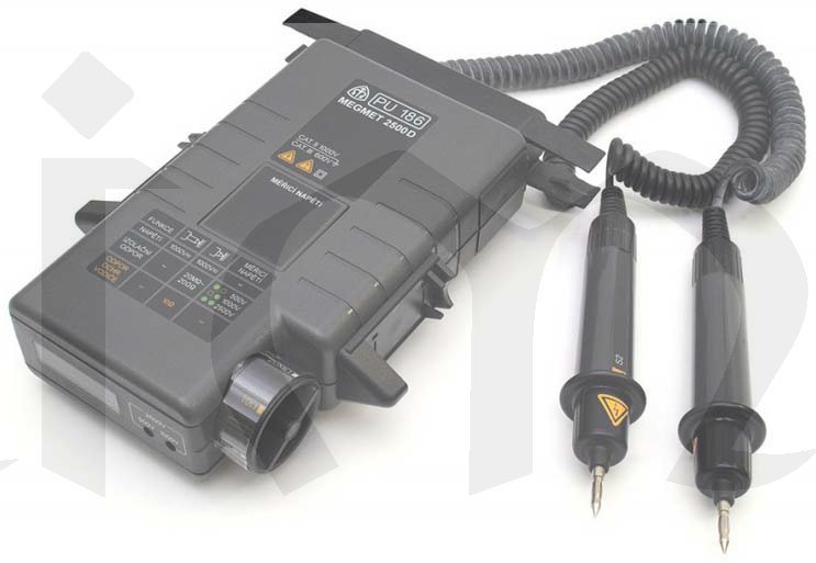 Měřící přístroj PU 186 Megmet 2500 D slouží k měření izolačních odporů do hodnoty 20 Gohm a odporu ochranného vodiče do 10 ohm. Dále měří stejnosměrná i střídavá napětí do 1000 V. Jmenovitá měřící napětí pro měření izolačních odporů jsou 500, 1000 a 2500 V. Měřící proud při měření ochranného vodiče je min. 200 mA.