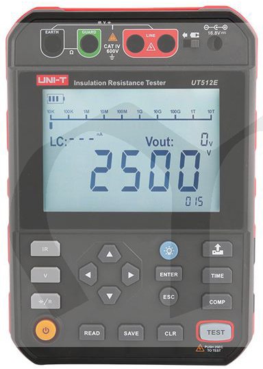 Tester izolačního odporu UT-512E 2,5kV , je digitální vysokonapěťový tester izolačního odporu, navržený s několika rozsahy včetně 250 V, 500 V, 1000 V, 2500 V. Je ideálním měřicím přístrojem pro oddělení elektrické energie, telekomunikací, meteorologie, strojovny, ropného pole, elektromechanické instalace a údržby průmyslových a těžebních podnicích.