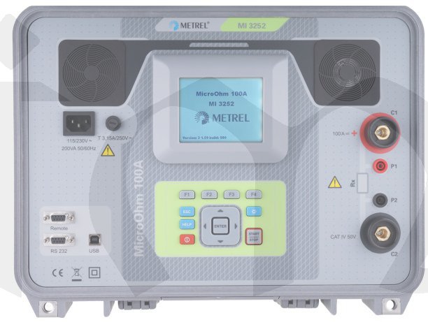 MI 3252 MicroOhm 100A je přenosný mikroohmmetr od firmy Metrel. Umožňuje přesná měření malých odporů na rozsazích 10μΩ ~ 20Ω, s rozlišením 1nΩ a přesností 0,25 %, proudem až 100A (100mA ~ 100A). Přístroj má krytí IP 64, možnost nastavení horního a dolního limitu s pohodlným vyhodnocením "vyhověl / nevyhověl" a možnost jednorázového či průběžného měření. MI 3252 MicroOhm 100A má bateriové i síťové napájení (kapacita baterií stačí na 10 minut měření proudem 100 A), vnitřní paměť až na 1000 výsledků měření. Dodávaný software PC SW HVLink PRO umožňuje naměřené hodnoty stahovat do počítače, vyhodnocovat, vytvářet zprávy, tisknout apod. Přístroj je vhodný zejména pro měření přechodového odporu vysokonapěťových i nízkonapěťových vypínačů, jističů, přepínačů a odpojovačů, pro měření kabelových spojek, svárů apod. MI-3252 MicroOhm 100A má grafický displej s rozlišením 320 x 240 bodů a s podsvícením, komunikační rozhraní RS232/USB (+ možnost dálkového ovládání přes RS232), rozměry 410 x 175 x 370 mm a hmotnost 11,8 kg.