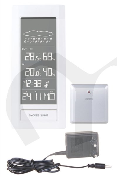 - zobrazení hodin, minut, data, dne v týdnu, vnitřní a venkovní teploty a vlhkosti, budícího času