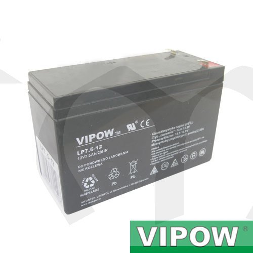 Baterie olověná 12V/ 7.5Ah VIPOW (7,2Ah) bezúdržbový akumulátor