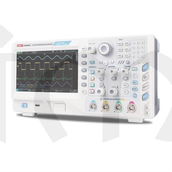 - standartní rozhraní: USB-Host, USB-Device, LAN, VGA, EXT Trig, AUX Out, LA, Signal source output interface (WaveGen), Pass/Fail, volitelně multimetrový modul (UT-M12)