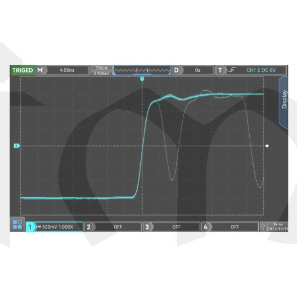 - vzorkovací frekvence v reálném čase: 2,5GSa/s (jeden analog. kanál); 1,25GSa/s (2 analog. kanály); 1,25GSa/s (4 analog. kanály)