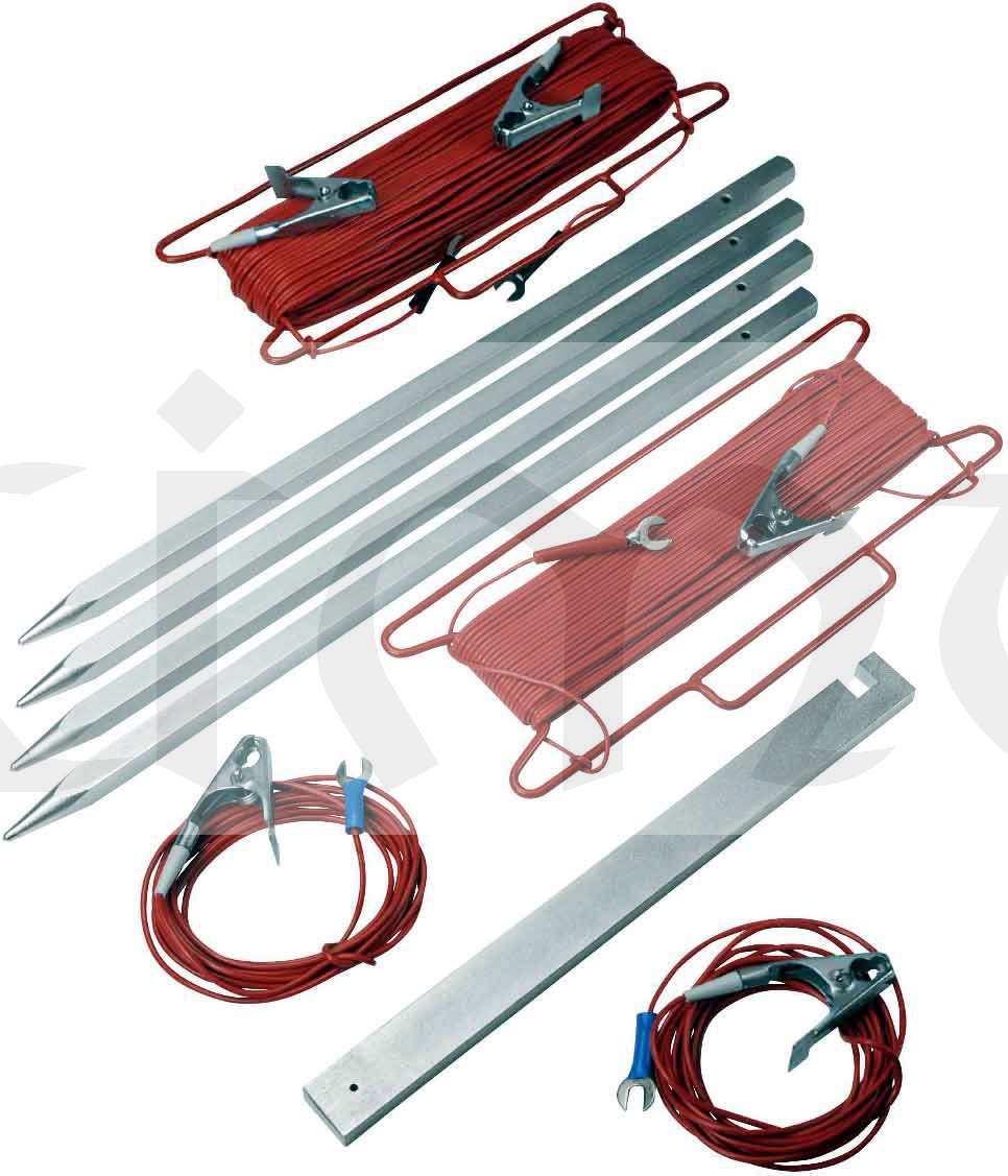 - měřící šňůry 3m - 2ks; na cívkách 25m - 2ks, 40m - 1ks, měřící sondy (elektrody) - 4 ks (délka 450 mm) klíč brašna na přísluš.