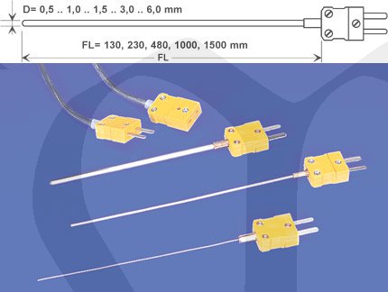Plášťový termočlánek NiCr-Ni typ K,