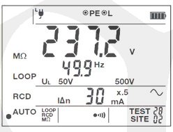 • automatické testovací sekvence pro chrániče (AUTO-RCD) nebo sekvence smyčka-chránič-izolace s hromadným uložením dat jedním tlačítkem