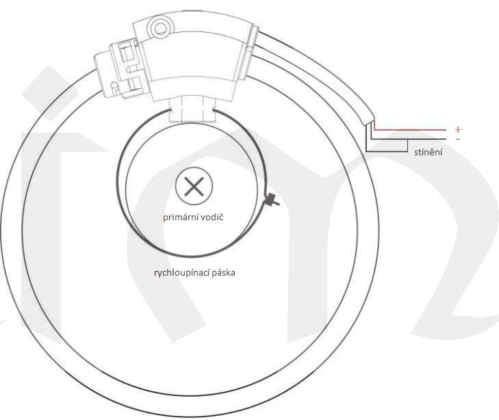 • Na uzávěru cívky se nachází otvor pro uchycení primárního vodiče pomocí rychloupínací pásky, která zajistí optimální pozici uchycení primárního vodiče nebo svazku vodičů.