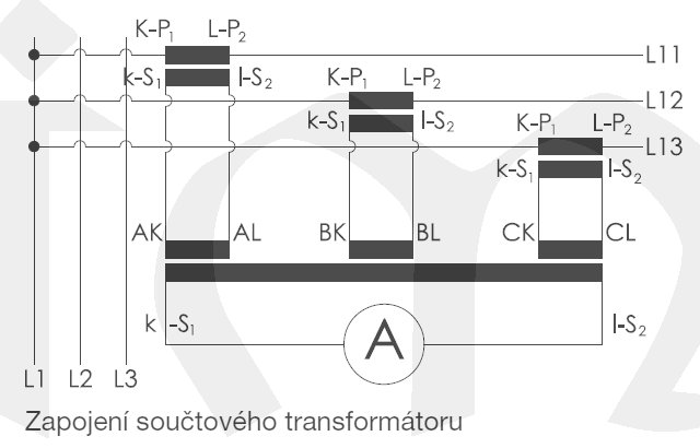 | Primární proud sčítacího trafa | 1+1+1 A |
