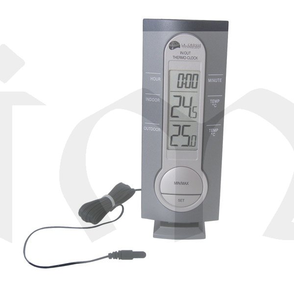 Teploměr pro měření vnější a vnitřní teploty s hodinami