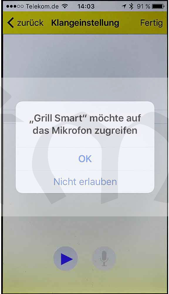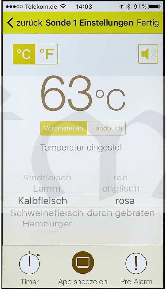 Obsluha a programování pomocí aplikace "Grill Smart". Aplikace může být nainstalována v zařízení Smartphone nebo tabletu s operačním systémem Android nebo Apple iOS. Spojení mezi zařízením a teploměr pomocí Bluetooth® 4.0 . Můžete si vybrat přednastavené teploty nebo si je nastavit podle sebe. Lze nastavit i dva časovače.
