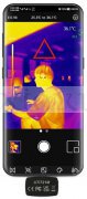 Termokamera UTi-721M je profesionální kamera pro chytré telefony pracující v oblasti infračerveného záření, určená pro měření povrchové teploty objektů v rozmezí od -20...+ 550°C. Kamera je určena pro připojení k běžnému chytrému telefonu, nejlépe vybavenému zásuvkou pro konektor typu USB-C. Je však možné kameru propojit s telefonem i přiloženými prodlužovacími kabely typu USB-C/USB-C nebo Mikro USB/USB-C. Na displeji mobilního telefonu můžete zobrazit tepelný obraz objektů, převedený do viditelného obrazu se zvolenou barevnou paletou: železná červená, duha, stupnice šedé, horká červená, černo bílá, láva, vysoce kontrastní duha. V reálném čase je možné nechat v obraze vyznačit místa s minimální i maximální teplotou s údajem ve stupních Celsia nebo Fahrenheita. Možnost nastavení alarmů při překročení určité teploty. Obraz z této kamery je možné prolínat (PIP) s obrazem přední nebo zadní kamery mobilního telefonu, přičemž současně lze infračervený obraz zrcadlit. Je možné analyzovat teplotu v bodě nebo vyznačené oblasti (obdélníku, kruhu, čáře apod.) měřeného objektu. Automatické nebo ruční spouštění uzávěrky fotoaparátu, uložení fotek nebo videí. Možnost úpravy fotek v aplikaci.