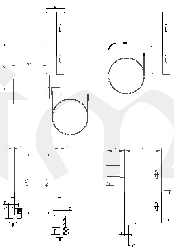 » s kapilárou až do délky 15m; průměr čidla 8,10,12,15mm; připojení s ořechem (M20x1.5, G1/2", G3/4", M27x2 atd..) nebo převlečnou maticí (M27x2, M30x2, M33x2, G3/4", G1" atd...)