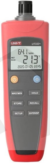 Měřicí přístroje UT-332+ měří s vysokou přesností teplotu a vlhkost, určují teplotu rosného bodu, teplotu vlhkého teploměru. Umožňují nastavit systémový čas s datem a ukládat naměřená data do paměti buď ručně, nebo automaticky v intervalech. Naměřená data lze později exportovat do počítačového softwaru pro další analýzu. Tyto měřiče mohou být použity v továrnách, potravinářství, zdravotnictví, laboratořích, ochraně životního prostředí a dalších oblastech. Přístroje obsahují vysoce přesný senzor a mikroprocesor s malou spotřebou energie, pro napájení stačí 4ks alkalických baterií AAA 1,5V.