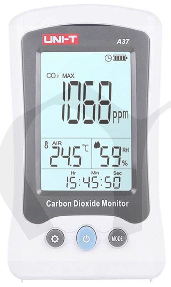 A37 monitoruje množství oxidu uhličitého, teplotu a relativní vlhkost vzduchu. Tento přístroj může být široce používán v domácnostech, kancelářích, vozidlech, laboratořích, kancelářích, hotelech, školách, továrnách, konferenčních místnostech, na letištích, v nemocnicích, restauracích, nákupních centrech a na mnoha dalších veřejných místech. Rozsah měření CO2 je od 400ppm (0,04%) do 5000ppm (0,5%). Přístroj má automatickou kalibraci CO2 a hodnotu CO2 následně měří 1x za 3 sekundy a má možnost nastavení systémového času a data. Pak lze pomocí krátkého stisknutí tlačítka MODE zobrazit pozastavená dat (HOLD), nebo maximální a minimální (MAX a MIN) hodnoty, nebo průměrné hodnoty (AWG), nebo průměrné vystavení osob CO2 na pracovišti během 8hodinového pracovního dne nebo 40hodinového pracovního týdne (funkce TWA), nebo přijatelný limit vystavení CO2 po krátkou dobu (časově vážený průměr), obvykle 15 minut (funkce STEL). Hodnoty CO2 se indikují také v šesti úrovních pomocí emotikonů.