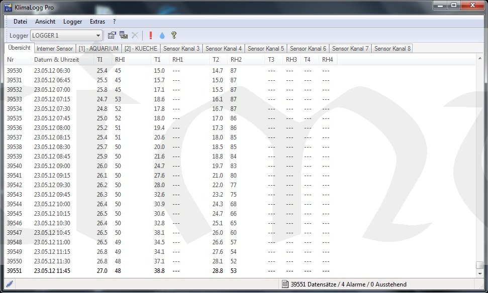 Teploměr s vlhkoměrem "TFA 30.3039" připojitelný do PC přes USB bezdrátový přijímač (velikost USB flash paměti, viz. obrázek níže) zaznamenává vnitřní teplotu a vlhkost, zobrazuje rosný bod, max. a min. naměřené hodnoty s časem a datem měření, průměrné hodnoty. Unikátní funkcí jsou pak alarmy pro dolní a horní mez měřených veličin (teplota, vlhkost). Přístroj má zabudovanou paměť až pro 50 000 naměřených hodnot, které si můžete nechat zobrazit přes displej (mnohem lépe se však data budou zpracovávat v PC).