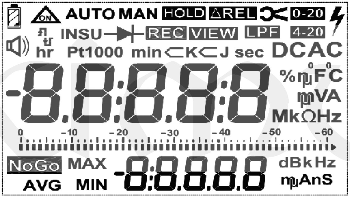 Dvouřádkovým přehledný displej a bargrafem, podsvětlený LED, čtení 60.000.