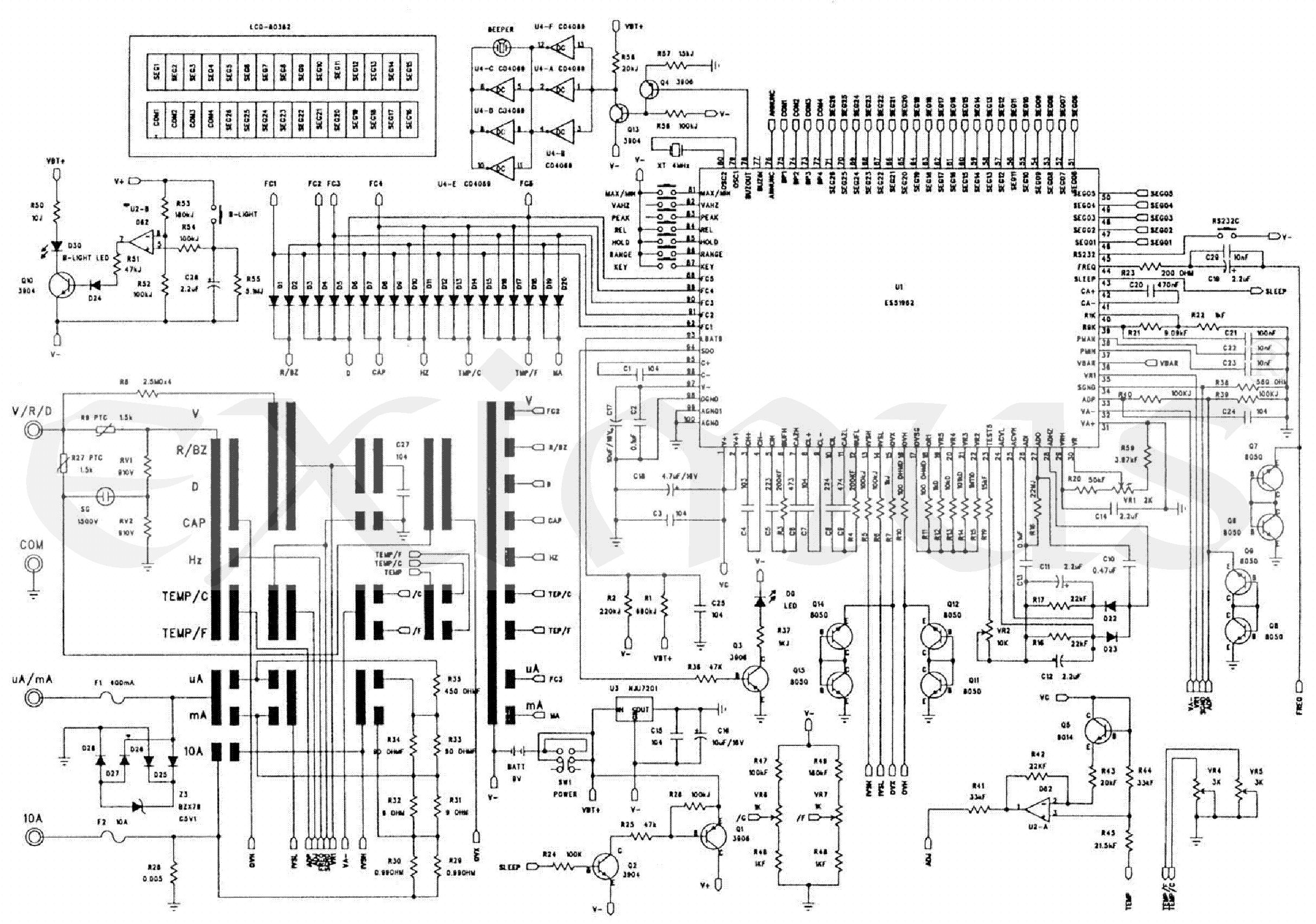 DC proud: 400µA / 4000µA / 40mA / 400mA / 10A