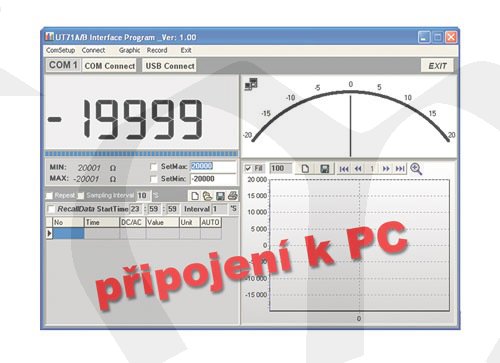 Odpor: 400 Ohm / 4 kOhm / 40 kOhm / 400 kOhm / 4 MOhm / 40 MOhm