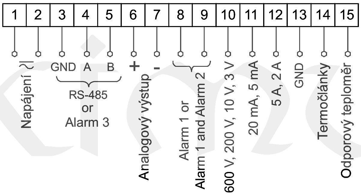 | Vstup přístroje | Pt100, Pt500, Pt1000, Termočlánek J (Fe-CuNi), Termočlánek K (NiCr-NiAl), Termočlánek N, E, R, S, T, Odpor 0..400 ohm, Odpor 0..4k ohm, 0..60 mV dc, 0..600 V dc, 0..20 mA dc, 0..5 A dc |