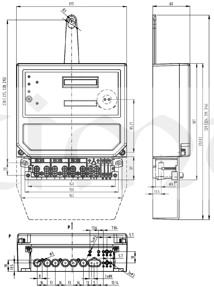 Třífázový, jednosazbový přímý elektroměr s mechanickým číselníkem