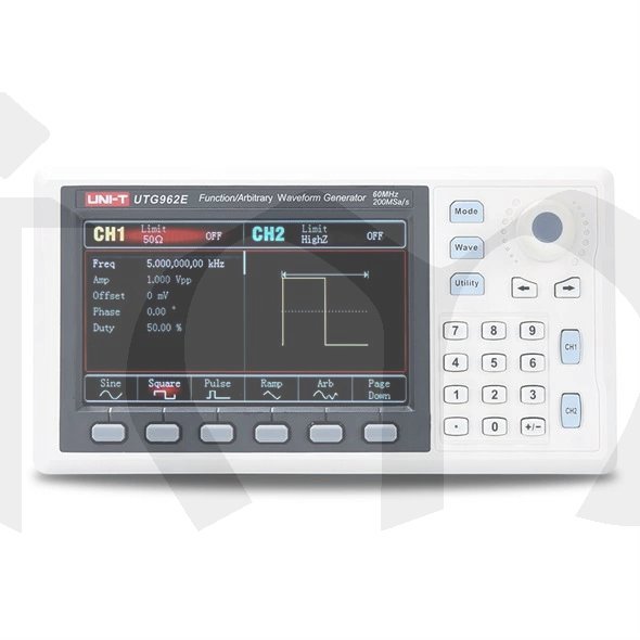 Generátor funkcí (libovolných průběhů vln) UTG-962E ze série UTG 900E je dvoukanálový generátor využívající technologii přímé digitální syntézy k vytvoření přesného a stabilního signálu libovolných tvarů vlny s rozlišením 1μHz a nízkým zkreslením.