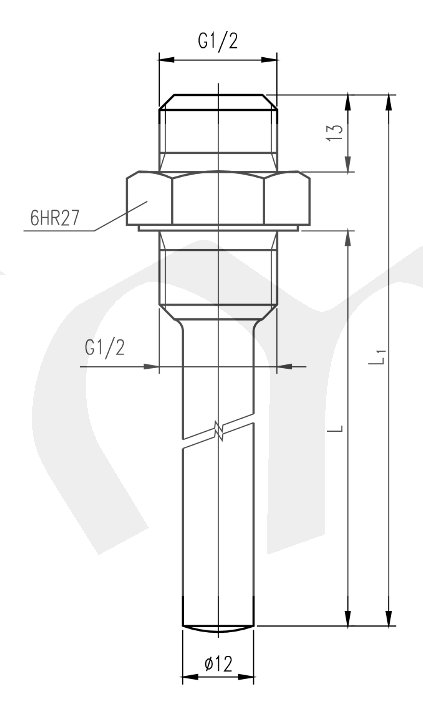Ochranná jímka pro termostat, materiál nerez ocel (17248, 1.4878), závity pro procesní připojení G1/2" vnější