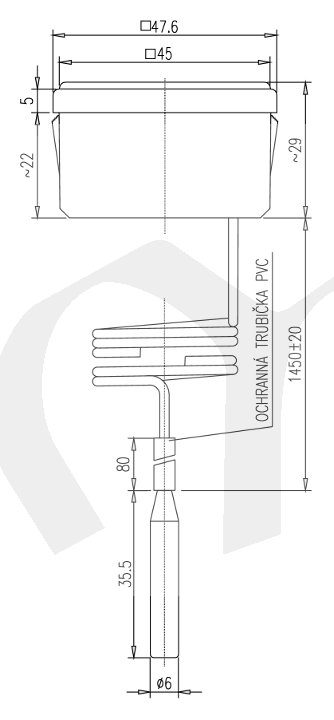 Montáž teploměru se provádí nasunutím hlavice teploměru do otvoru dle příslušného rozměrového náčrtu a umístěním teploměrového