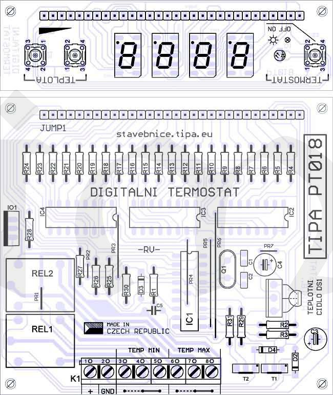 - paměť EEPROM pro nastavené hodnoty, díky čemuž se např. při výpadku proudu nemusí termostat znovu nastavovat.