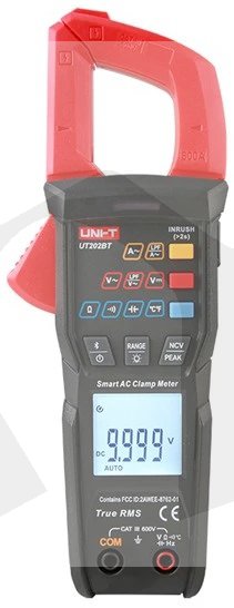 UT202-BT je snadno použitelný inteligentní klešťový multimetr s Bluetooth, který dokáže automaticky detekovat většinu běžných parametrů - AC/DC napětí, AC proud, odpor a spojitost vedeni. Zobrazuje skutečné efektivní hodnoty rms.