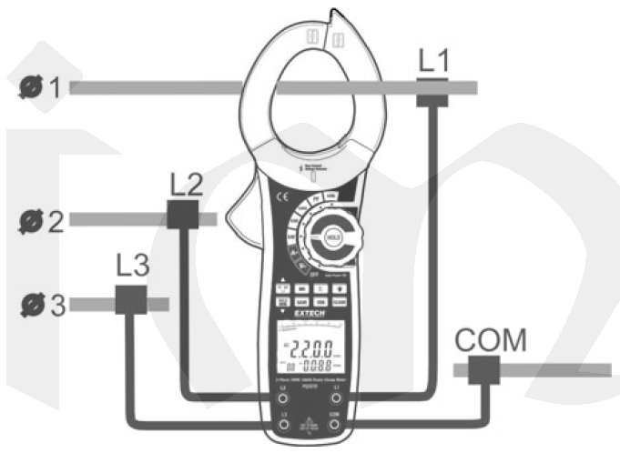 ♦ měří V, A, kW, kVA, kVAR, PF,  cosfi, kWh, Hz