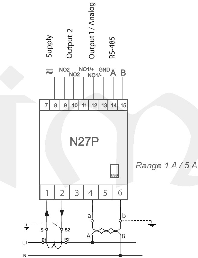 N27P-1200E0, x/1/5A, analog.+1rel., RS485